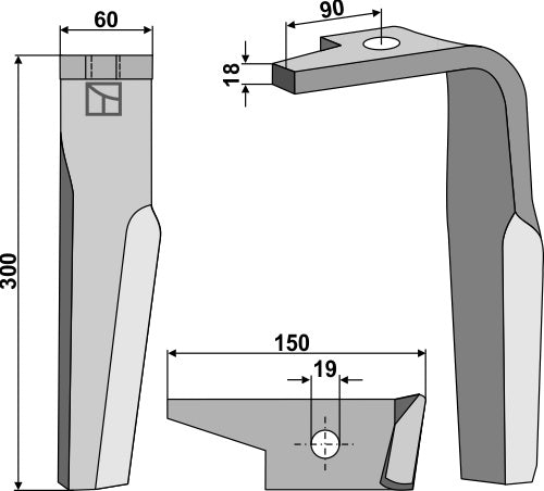 Tænder til rotorharver 300 mm, højre