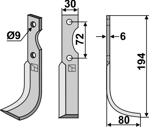 Klinge 194 x 30 mm, højre