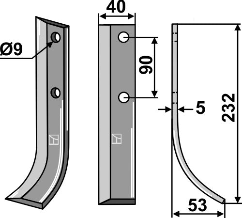 Klinge 232 x 40 mm, højre