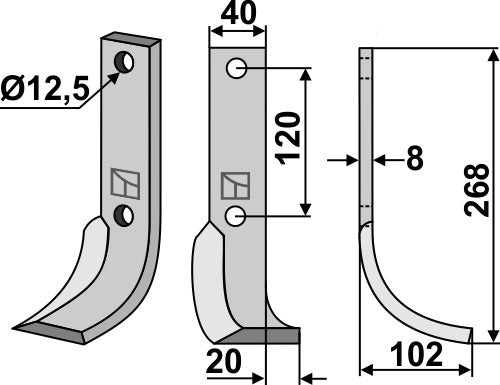 Klinge 268 x 40 mm, højre