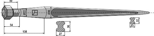 Spids tand med kegleformet møtrik