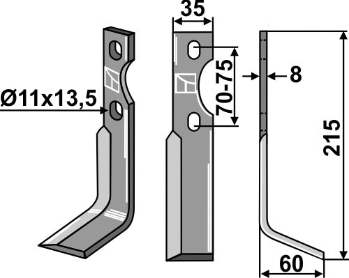 Roterende tand 215 x 35 mm, højre