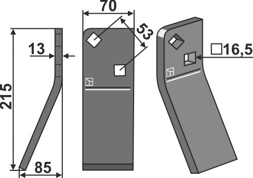 Roterende tand 215 x 70 mm, venstre