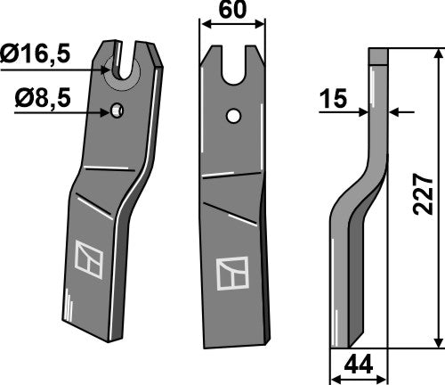 Roterende tand 227 x 60 mm, højre