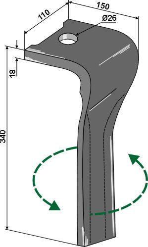 Tænder til rotorharver, venstre