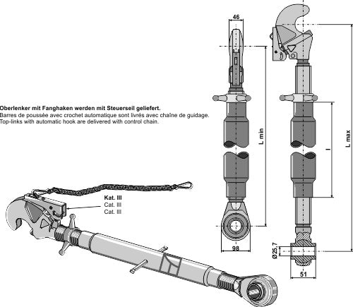Top-links med automatisk krog og trækstang M36x3