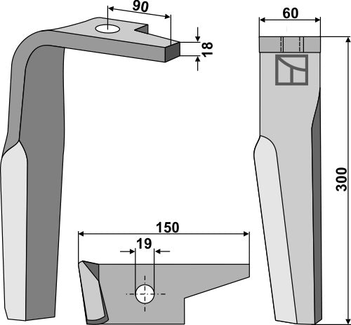 Tine for rotary harrows 300mm, left