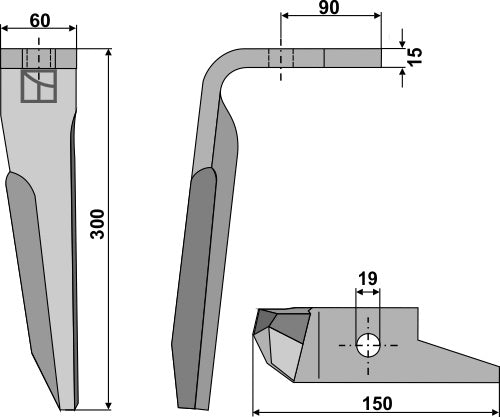 Tine for rotary harrows 300mm, left