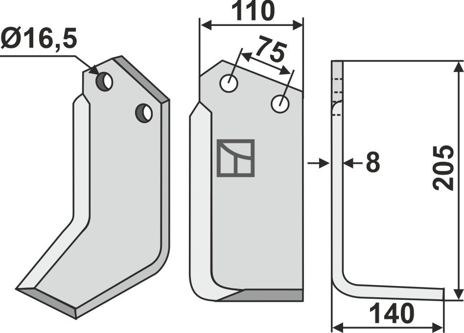 Terä 205 x 110 mm, oikea