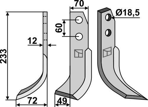 Terä 233 x 70 mm, vasen