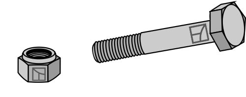 Kuusiokantapultti M12x1,75x65 itselukittuvalla mutterilla