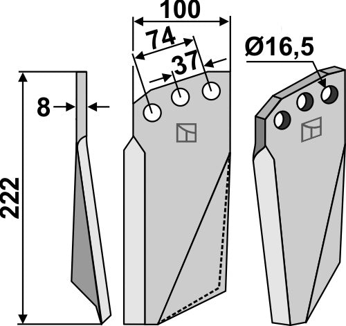 Pyörivä piikki 222 x 100 mm, vasen