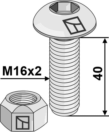 Kuusiokoloinen laipparuuvi M16x2x40 itselukittuvalla mutterilla