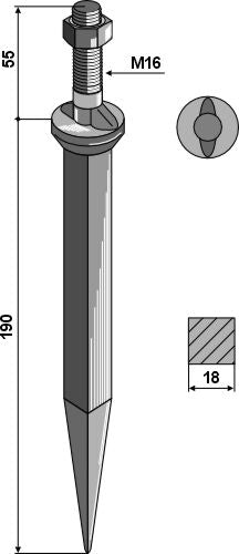 Sead-äespiikki booriteräksestä, soikea kaula liikkeen suuntaan