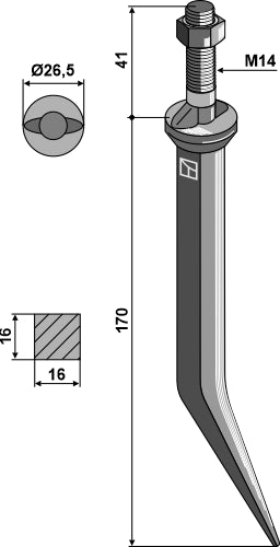 Sead-äes piikki booriteräksestä, jossa on liikkeen suuntaan kulkeva soikea kaula