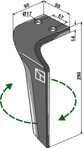 Pyörivän äesän piikki 290 mm, oikea