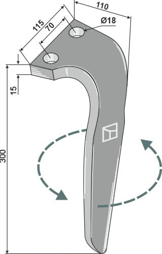 Kierrekultivaattorin piikki 300 mm, vasen