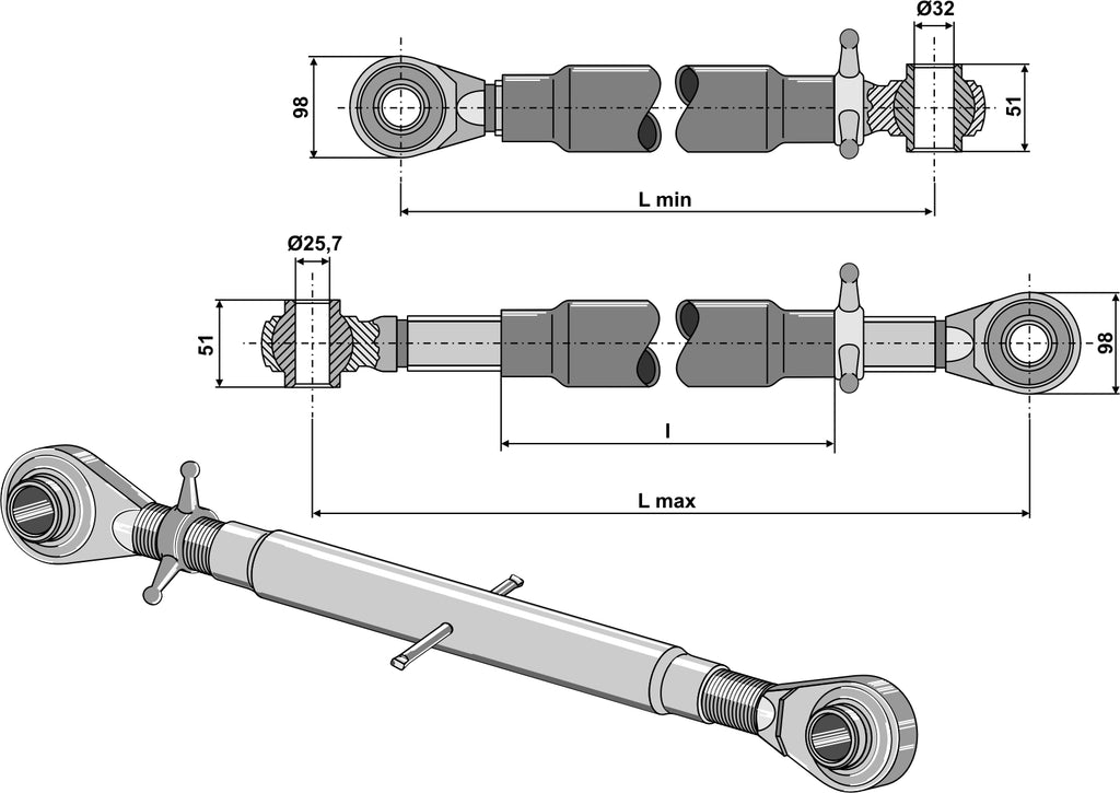 Yläkiinnikkeet karkaistulla kiinnitystangolla M36x3