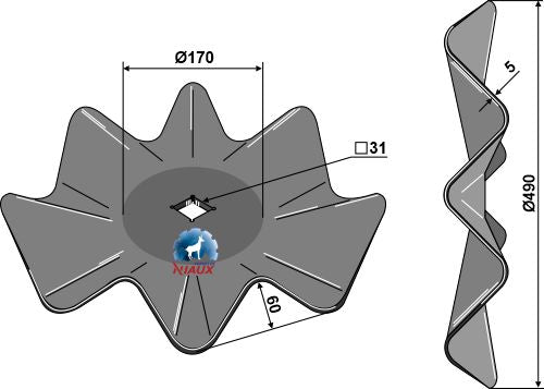 Aaltoileva levy Ø490x5