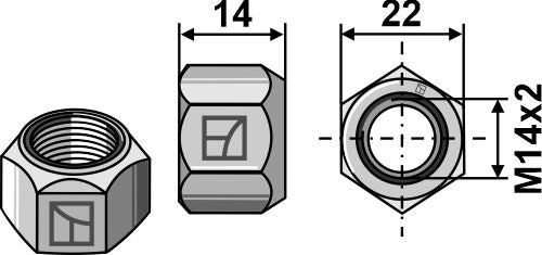 Helmetallmutter med klemmeanordning M14x2 - DIN980 galv. 10.9
