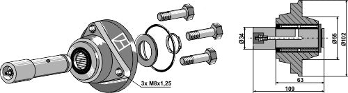 Lager uten lagerdeksel med aksel Ø34 mm