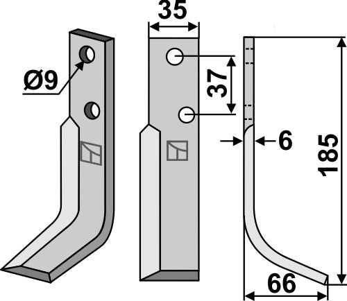Blad 185x35mm, høyre