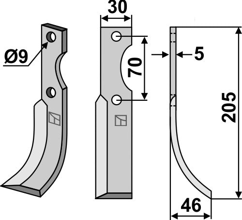 Blad 205x30mm, høyre