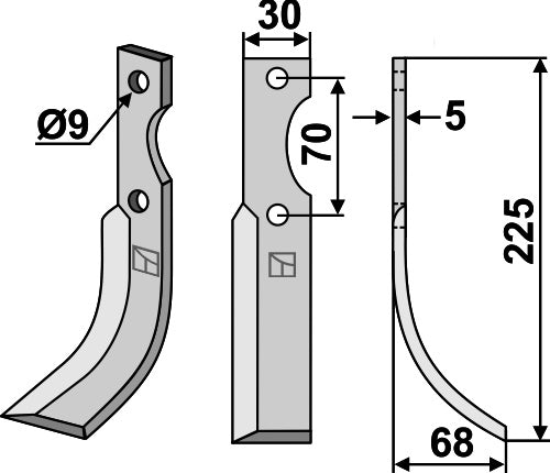 Blad 225x30mm, høyre