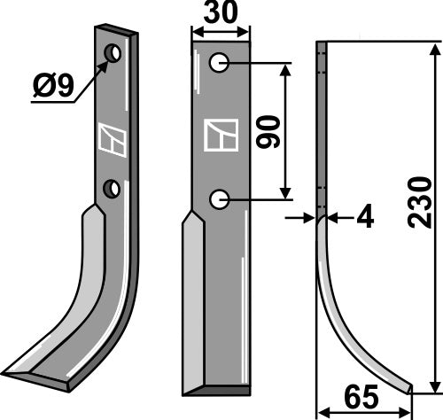 Blad 230x30mm, høyre