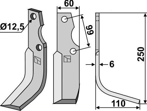 Blad 250x60mm, høyre