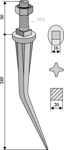 Kjegleformede harvetenner med ribber