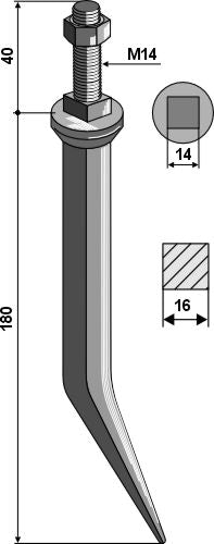 Harvtenner av borstål med firkantet hals