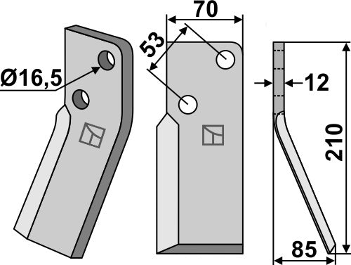 Roterende tind 210x70mm, høyre