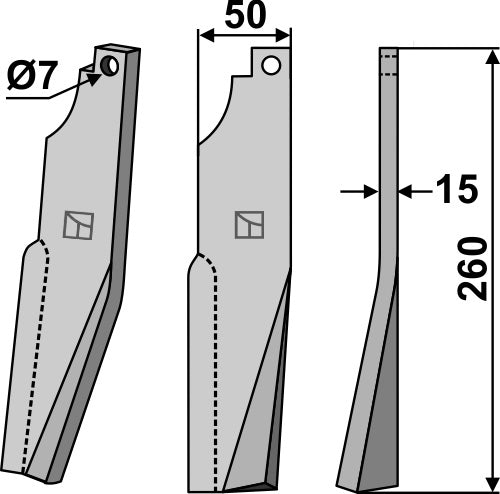 Roterende tind 260x50mm, høyre