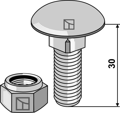 Underkoplingsskrue M12x1,75x30 med selvlåsende mutter