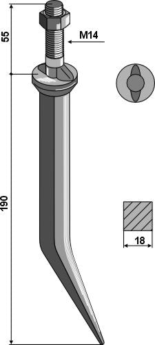 Harvtann av borstål, oval hals langs bevegelsesretningen