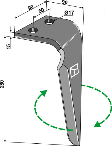 Tind for rotorharver 280 mm, høyre