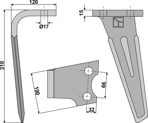 Tind for rotorharver 310 mm, venstre