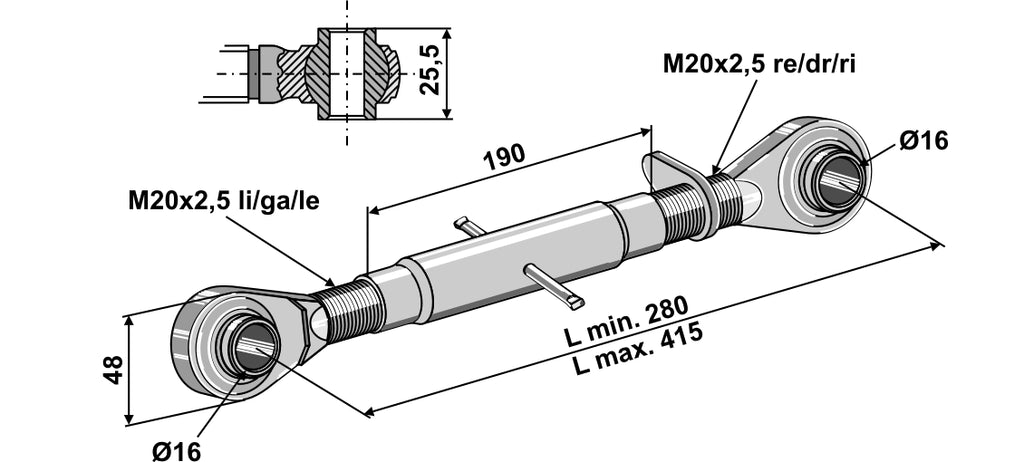 Toppstag med herdet strekkstang M20x2,5