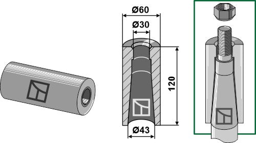Sveisehylse for tind med M28-gjenger