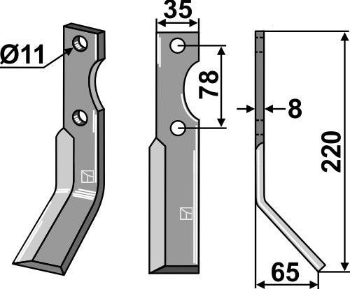 Rotary tine 220x35mm, right