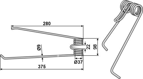 Tedder tine Ø9