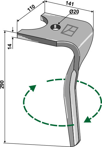 Tine for rotary harrows 290mm, right