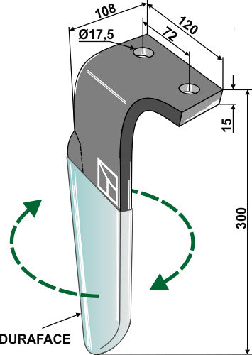 Tine for rotary harrows (DURAFACE) 300mm, right