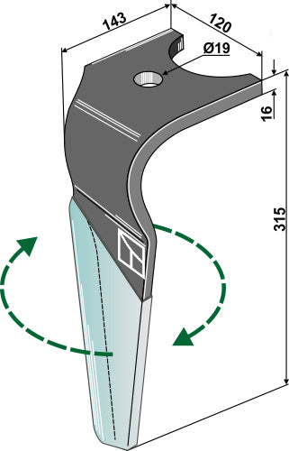 Tine for rotary harrows (DURAFACE) 315mm, right