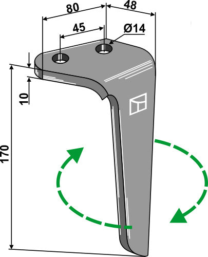 Tine for rotary harrows, right