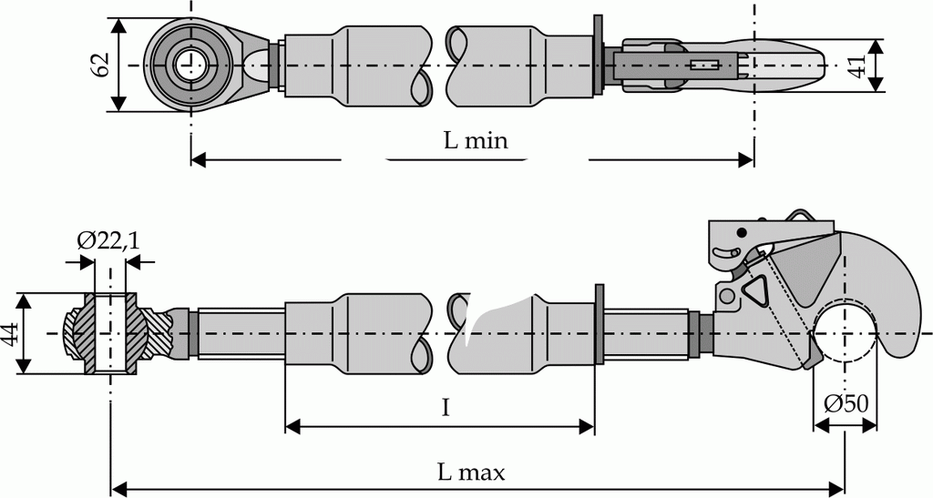 Top-links with automatic hook and tie-roads M30x3,5