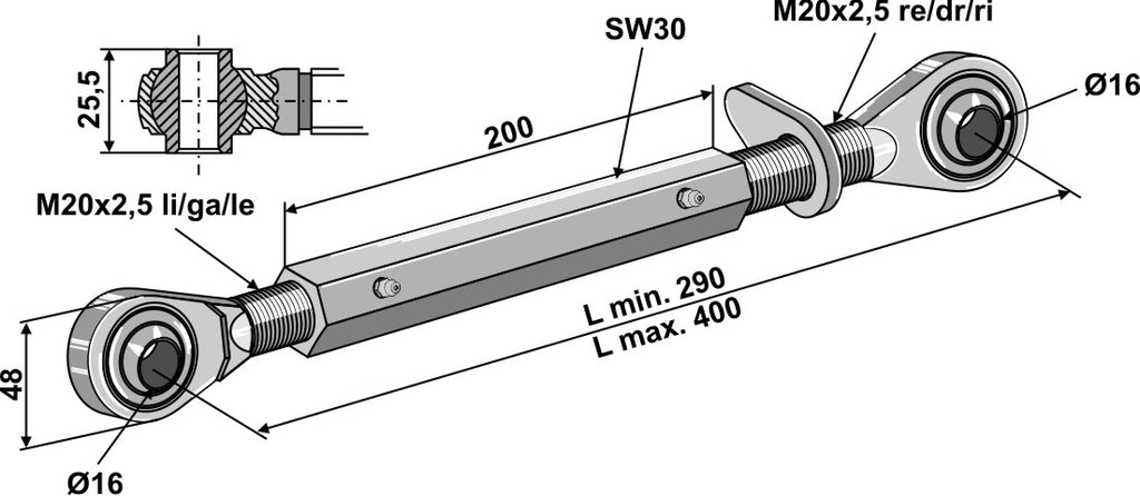 Top-links with hardened tie-rod M20x2,5