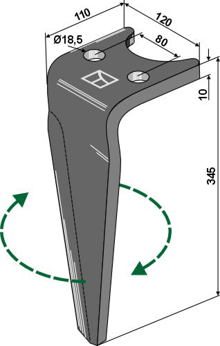 Tand för rotorharvar 345 mm, höger