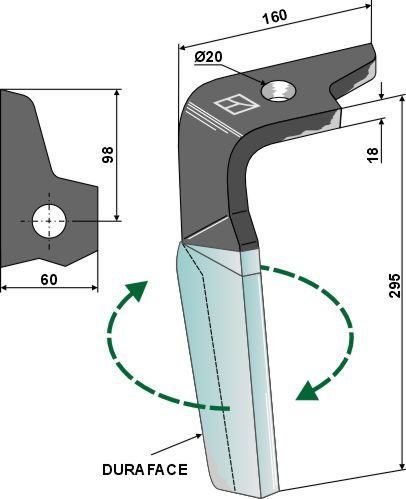 Tand för rotorkultivatorer (DURAFACE) 335 mm, höger